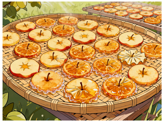 沙果切片躺在竹筛晒场