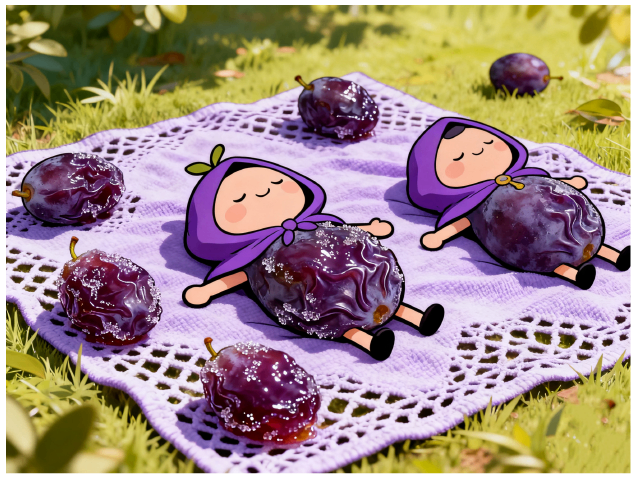 西梅们躺在镂空晒毯上