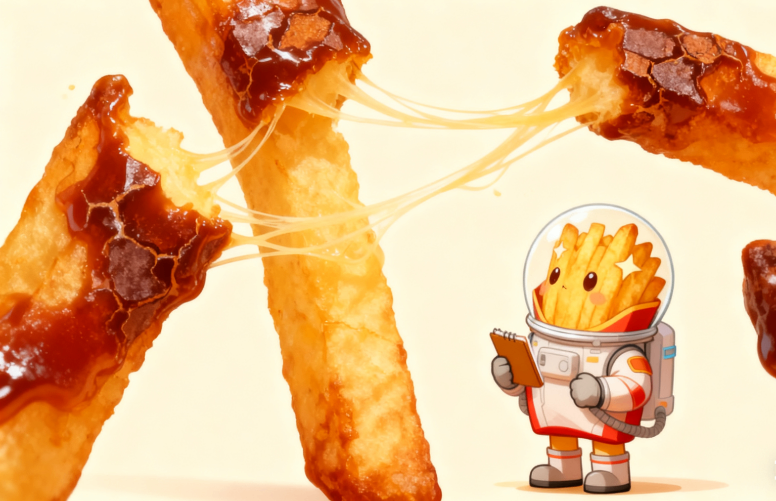 正给年轻薯条展示“拉丝特技”